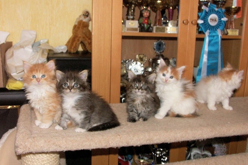 Geplant hatten wir dich damals aber gar nicht. Im April 2007 machte ich einen Besuch bei unseren Züchtern in Siegen NRW. Sanny und Bruno hatten da gerade einen sehr bunten Wurf. Ihr fünf Geschwister wart gerade mal so gut 4 bis 5 Wochen alt und noch in eurem Kinderställchen, mit etwas, durch Durchfall verklebten Hintern. Ich hatte dann Sanny animiert, dass wir beide eure Hintern, in warmen Wasser badeten und anschließend dann trockenföhnten. Ich hatte den Part Föhnen übernommen. Damals dachte ich nicht im Traum daran, noch eine Katze aufzunehmen und es blieb einfach bei einem netten Besuch bei unseren Freunden, Sanny und Bruno.
